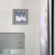 Söt Square Magnet, med Maria Egilssons akrylmålning Waltz från Snöflingor, som satte i ett utklippt ram i silver.