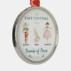 Familj med tre första julprydnadsföremål för föräldrar som just hade sitt första barn med musklerkonsten mamma, pappa och baby. Vår första jul som familj av tre personliger Nutcracker håller ornament.
