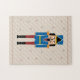 Ett julpussel med en illustration av en Nutcracker, några stjärnor och röda prickar på en strimlad brun bakgrund. En trevlig gåva till en gåva på Julafton!