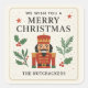 Lägg till en liten charm till dina helgdag med den här eleganten. Med en klassisk nötköttsdesign omgiven av löv, bär och julgrej, står det här moderna och roliga märket "Vi önskar dig en God jul" med ett anpassade som innehåller ditt namn. Perfekt för presentemballering, party favors eller helgdag. Den här klisterlappen blandar tidlös tradition med ett rent contemporary.
