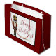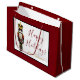 Wrap your gifts in festive elegance with this Holiday Gift Bag featuring a traditional hand painted watercolor nutcracker framed by a rich red border with a thin black accent line. The design includes customizable script text that reads Happy Holidays, with editable space below for your family name, business name, or event title perfect for personal or professional gifting. The large size makes it ideal for wrapping holiday presents, corporate gifts, party favors, or festive giveaways. The timeless red, gold, and black palette adds classic Christmas sophistication. Perfect for families, hosts, and small businesses looking to elevate their gift presentation. Part of the Holiday Nutcracker Collection, this gift bag pairs beautifully with matching stickers, gift tags, invitations, menus, and napkins for a coordinated and polished holiday entertaining suite.