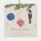 Nutcracker, rosa bakgrundkeramisk ornament.