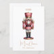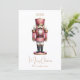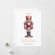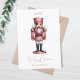 Vit bakgrund och en rosa nötskare. God jul skrivet med ett stil-skript som hanteras med trendig. Tillbaka: lägg till anteckningen och namnen.