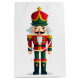 Nutcracker soldier in vibrant reds, greens, and yellow on a white background