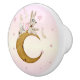 De här söta keramiska byråknopparna har kaninen ljugande på måne från vår Nutcracker Suite-samling. Bakgrunden är en liten polka punkt mönster av rosa och gult. Stjärnor är tvillingande i himmel. Det finns andra tecken från Nutcracker Suite-samlingen i butiken så att du kan ha alla samma knop eller en mängd av dem på baby presiau.