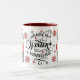 Nutcracker Winter Wonderland Script Snowflake Two-Tone Coffee Mugg Walking på vintern under ett vackert skript i mitten i mugg omgiven av rött och svart snöflingor som matchar den vackra, svarta och vita klassiska nötköttstrion. Ha en Holly Jolly-jul-helgdag och njut av det söta mugg som skapar en julstämning i bord.