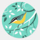 Dekorativa fågelklistermärken med stiliserade röda bröstad nuthatch-konst på teal färg-bakgrund och snurra grenar med matchande löv