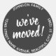 Etikett för dekal för vi har flyttat med ett modernt, enkelt skript och typsnittsdiagram. Bakgrunden till färg kan enkelt ändras genom att klicka på personanpassa och sedan klicka för att anpassa ytterligare för att visa färg-väljaren. Kontakta vår butik om du behöver hjälp.