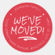 Etikett för dekal för vi har flyttat med roligt, modern returadress, handskriven teckencalligrafi. Bakgrunden till färg kan enkelt ändras genom att klicka på personanpassa och sedan klicka för att anpassa ytterligare för att visa färg-väljaren. Kontakta vår butik om du behöver hjälp.