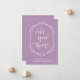 Det här lila "nya hemmet"-annonskortet har en rustisk blommigt och frasen "Vårt nya hem" skriven i underbar kalligrafi.