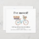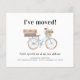 Jag har flyttat modern flyttmeddelande med akvarell feminin cykel med blomsterkorg och bagage. Perfekt för att låta vänner och familj veta om din nya adress och var husvärmningsfesten kommer att äga rum. Lägg till din nya adress genom att klicka på "Personifiera"-knappen