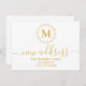 Fira ditt stora drag i stil med det här eleganten Nya adress aviseringskortet, med ett minimalistiskt botaniskt andetag i guld och klassisk monogramdesign. Personlig med din första och uppdaterade kontaktinformation är det här sofistikerade vykortet perfekt för att lära vänner och familj att veta din nya adress. Ett modernt och klassligt val för par, familjer eller enskilda som inleder ett nytt kapitel.
