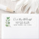 Den här Nya adress returadressetiketten är dekorerad med vattenfärgsblad och skripttypografi för snyggt. Enkelt anpassade. Använda Verktyg i Design om du vill ändra texten storlekt, stil eller färg. Ursprunglig vattenfärg © Michele Davies.