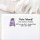 Ny adress Lila Retro Fiat 500 med julklappar, handmålad vattenfärg Efter allt arbete och stressa, säg att du har en ny adress! Det finns inget bättre (och enklare!) sätt att sprida nyheterna än att lägga till en speciell adressetikett i e-postmeddelandet. Det finns många olika etiketter tillgängliga, så plocka den design och formulering du vill ha och lägg till dina detaljer.