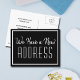 Ny adress minimalistisk svart vit affär meddelande vykort