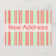 Ny adress orange gröna ränder meddelande vykort