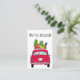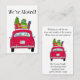 Ny adress rödbil med julklappar visitkort