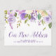 Meddela ditt nya hem till familj och vänner med denna moderna blommigt botaniska design av modernt skript och lila blommor.