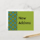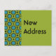 ny adress roligt för Turkos-grönt, färglös cirkelformad mönster-design. Ändra färg i bakgrunden, ändra färg och teckensnittstyp. Anpassa med ditt eget meddelande. Anpassa och anpassa texten på den här produkten för alla tillfälle-händelser eller speciella händelser. Postkort är perfekter för massutskick. Postkort är ett billigt val när du behöver skicka ett stort antal meddelanden eller inbjudningar till partier. Tillgängliga rabatter när de köps i bulk.