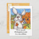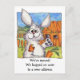 Om du nyligen flyttade till en ny granne, kommer denna tecknade kanin att sprida nyheten med detta söta vykort. Framsidan lyder: "Vi har flyttat. Vi hoppade över till en ny adress" En annan liten kanin på baksidan med en tankebubbla ger den nya adressen. Alla textfält kan anpassas och redigeras.