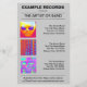 En flygblad som passar för en ny albumstart. Registrera företaget namn överst (Front and back) tillsammans med konstnären/bandet namn. Huvudbild av albumhöljet (lämpligt för en fyrkantig bild) i mitten med detaljer nedan. Tillgänglighetsinformation vid grund. På baksidan finns samma sidhuvud- och sidfotsinformation tillsammans med tre albuminiatyrer med detaljer längs sidan. Detta kan användas för andra album av samma artist/band eller användas för att marknadsföra album av andra konstnärer/band. Den här flygaren är anpassade på många sätt, hela inslag är anpassade. Du kan också ändra bakgrunden till färg och teckensnittet färger.
