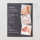 Meddela din nya bebis till vänner och familj med dessa rustika kritskive-, roliga och moderna fotokollage-födelsekort. Anpassa med 3 av dina favoritfoton och personifiera med namn, födelsedatum, födelsestatistik. COPYRIGHT © 2020 Judy Burrows, Black Dog Art - Alla rättigheter förbehållna. Ny Bebis 3 Foto Kritskiva Födelse Tillkännagivande Postkort