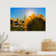 Varje dag är en ny början, ta ett djupt andetag och börja om igen. En vacker soluppgång över en solros fält.