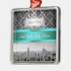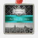 NY City Skyline BW B3 Damask F2 - Invation Suite - Event Ornament Anpassades Inbjudningar och tillbehör med en ikonisk vy av New York City Skyline från 30 Rockefeller Center, med ett svart och vitt foto av Empire state Byggnad, nedre Manhattan inklusive World Trade Center. Den har också ett svart dämpningsmönster mot en övertoningsbakgrund för grått i silver och ett turkosfärgat band. Den har också en vit övertoningsetikett i ett silver-utseende ram.