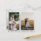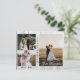 Meddela bröllop till dina vänner och familj med det här moderna kortet. Utformningen har 3 fotokollage framtill med vit kalligrafi "Ny gifta" och namn på de nya helgerna. På baksidan har du ett foto på lodrät på sidan och ett textstycke i giftermål på andra sidan. Anpassa kortet med foton, information om giftermål, datum för giftermål och namn. Det här kortet har en rustik träbakgrund.