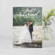Ny gifta! Meddela bröllop med det här anpassadet bröllop-annonskort. Den har vit penselcalligrafi. Anpassa genom att lägga till information. Det här fotot-annonskortet från bröllop är perfekt för ett utlysande av en elopation och ett överraskande uttalande från bröllop. Matchande objekt är tillgängliga.