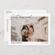 Ett enkelt men effektivt sätt att leverera dina fantastiska nyheter: ett vykort med bevis på giftermål! "ny gifta"-meddelandet med den här eleganten och toppens chic, men ändå är det tidlös design för överraskningen för din familj och dina vänner. Med ett romantiskt skript och ett serif-teckensnitt kommer det här att fånga innehållet i dina löften och giftermål