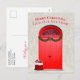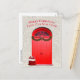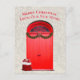 Denna julhöjdsdesign har röda dubbeldörrar med en fönsterruta högst upp för ett nytt hem för julen meddelande. Det finns grön garland under fönstret och en presentfylld tomtepåse på trappan. Anpassa texten på framsidan och baksidan, ta bort eventuell text eller klicka på anpassa för att välja en annan typsnittsstil, storlek och färg.