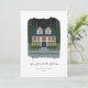 Original julillustration av kolonialhus med snö som börjar falla. Valfritt foto och område för ny adress på baksidan, eller anpassa designen ytterligare för att ta bort baksidan.