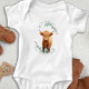 Vi presenterar vår söta babybodysuit som har en charmig höglands-ko omgiven av frodig grönska i en trendig salviafärg. Perfekt för små barn som älskar lantdjuren och rustika lantliga vibbar, är denna bodysuit ett måste för alla babys garderob.