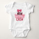 Denna speciella design har en söt text tryckt på framsidan som lyder "New to the Cousin Crew". Texten är troligen skriven i ett lekfullt och barnsligt teckensnitt som bidrar till charm och söthet i budskapet. Frasen "New to the Cousin Crew" antyder att barnet är ett nyligen tillskott till familjen och har många kusiner att se fram emot att umgås med. Designen kommer sannolikt att tilltala föräldrar eller vårdgivare som värdesätter familjeband och vill fira ankomsten av ett nytt barn på ett roligt och lättsamt sätt. Budskapet är sött och välkomnande och framhäver glädjen och spänningen som följer med att vara en del av en kärleksfull familj. Överlag är denna design ett förtjusande och bedårande tillskott till alla barns