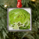 Ny isberggrönsallat klippte i halva, på vit julgransprydnad metall