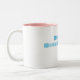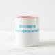 En vitmugg med en rosa insida som presenterar formulera "nytt mammabehovskoffein" i kvarterbrev.
