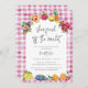 Fira den brud som ska skaka med den här färgen utanför inbjudningskort för möhippan, med en viskfärgad vattenfärgsdesign som brinner med färgstarka frukter och lekfull rosa gingham. Med inspiration från en charmerande jordbrukares marknad blandar detta moderna inbjudan perfekt ihop rustisk charm med contemporaryns fläkt. Det är det idealiska valet för en glad och unik fullt av ny roligt och kärlek!
