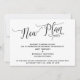 Denna svits utmärkande drag beror på den invecklade, virvlande typsnittsstilen som används för accentfraser. Om du behöver låta dina gäster veta att din bröllopsdag har blivit uppskjuten, ger detta kort ett elegant alternativ. I denna pjäs användes den kalligrafiska typsnittet för att skapa en grafik som visar orden "Ny plan". Använd mallfälten för att lägga till dina personliga detaljer och gör denna design till din egen. Bakgrunden kan ändras till valfri färg du föredrar. Vänligen hör av dig med eventuella specialförfrågningar eller för anpassningshjälp. // 98 //