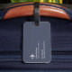 En modern och elegant idé för att identifiera ditt bagage på flygplatsen... Ett enkelt monogram (initialer och flygplan), ditt namn med anpassningsbar resande relaterat ord (nytt äventyr)... och adress för kontakt i baksidan, med bilden av världens karta med faux guld ram...