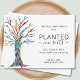Låt familj och vänner veta att du har flyttat med detta stilrena meddelande vykort som är dekorerat med ett färggrant familjeträd.