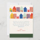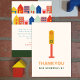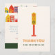Nytt tema för neutral baby shower med illustration på framsidan av trafikljus med texten "tack för att du stannade". Baksidan har hus och byggnader med tackmeddelande.