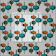 Ny utformning av vintagens halvsekelåterblått, grönt och orange på gråttets bakgrund, väv.