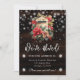 Gorgligt Rustic Watercolor Winter Mailbox med Red Poinsettia och bär på en mörk brun träbakgrund med snöflingor övertäckning och diamanter