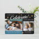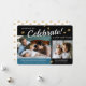 Det här fotot baby-meddelandet har en perfekt för utformning för ett baby som är fött nära nyår. Det finns en text som lyder: SÅ MUCH TO Celebrate! och två foto ramar för bilder i baby och familjen. Bakgrunden är svart och mörk blått och accentueras med guld hand plockade-stjärnor.