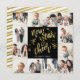 Ringen i det nya året med denna snyggt kvadrerar fotokortet som presenterar ett collageraster för 12 foto, och skämtsam chic skrivar typografi i ett fauxguld omkullkastar att "jubel för det nya året" för något att säga,