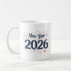 Högtidlighålla 2026 varje morgon med detta festliga nyårsjubileum mugg! Utformningen har fet "2026"-nummer i marinblått, dekorerat med en färgstark mönster av stjärnor i gult, rött och ljusblått. Ovanför visas ord "nyår" i ett skript med snyggt och omgiven av vibrerande rött och fyrverkeripjäser med gult. Konfetti-prickar och stjärnor spridda över den vita bakgrunden, ge utformningen av en roligt och högstämning. Perfekt för att sippa kaffe, te eller hett kakao när du ringer på det nya året - eller som en gåva till vänner och familj att börja 2026 med glädje!