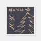 Tunga indigo med guld och vit elegant enkel papper napkin New Year modern typography script med snö mönster. Perfekt till Nyårsaftonen party!
