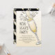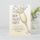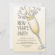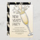 Nya årets inbjudan till nyårspartiet med ett mousserande champagneglas till detta nyårslands party i ett enkelt, coola och modernt stil.