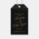 Med roligt guld glitter-design är dessa festliga nya år party ett tack till er märkre perfekt för det moderna evenemanget. Guld-folie på svart bakgrund gör att dessa märkre framträder. Hitta matchande objekt i min butik.